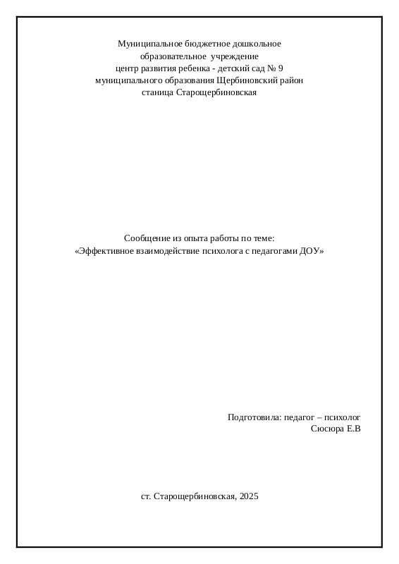 Подготовила: Шулакова Елена Сергеевна, педагог-психолог МБДОУ ЦРР - детский сад №2, г. Усть-Лабинск