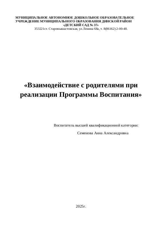Сообщение из опыта работы по теме: "Взаимодействие с родителями при реализации Программы Воспитания"