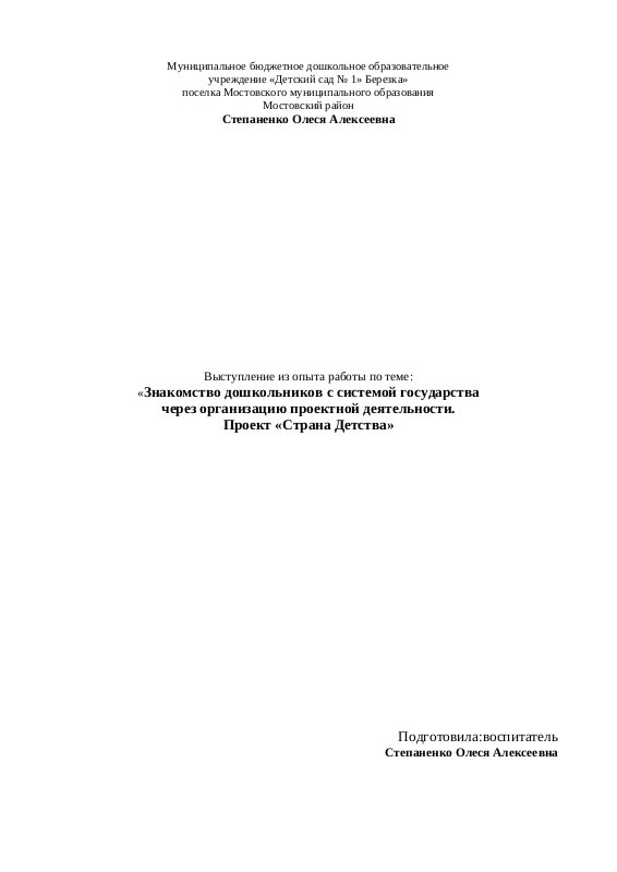 из опыта работы по теме: «Детская проектная деятельность как средство развития инициативы, самостоятельности, творчества дошкольников (на примере подготовки к конкурсу «Я - исследователь»)