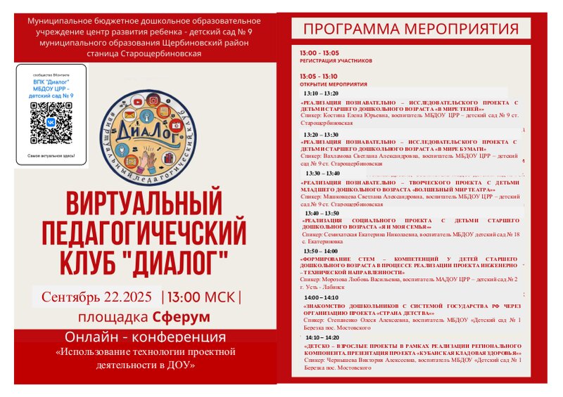 Программа онлайн - конференции. "Сетевое сообщество педагогов". Тема: "Использование технологии проектной деятельности в ДОУ"