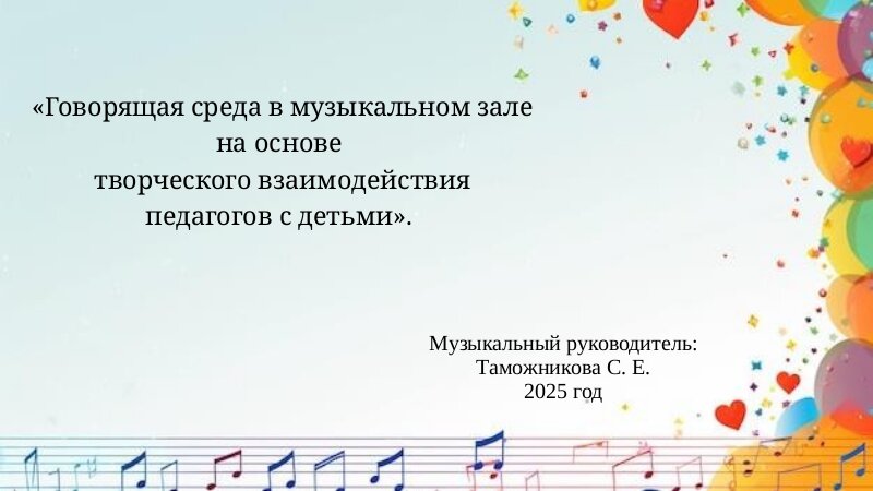 Презентация к сообщению из опыта работы: "Говорящая среда в музыкальном зале на основе творческого взаимодействия педагогов с детьми"
