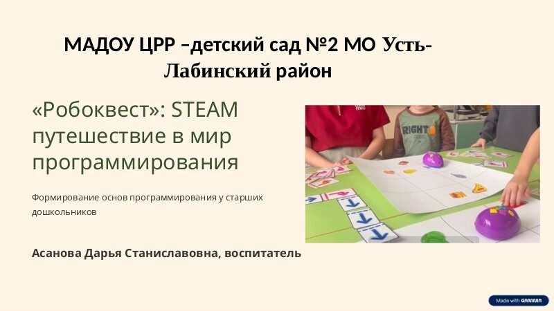 Сообщение из опыта работы по теме: "Робоквест" формирование у старших дошкольников основ программирования"