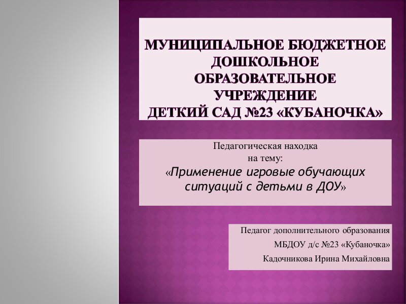 "Применение игровых обучающих ситуаций с детьми в ДОУ".