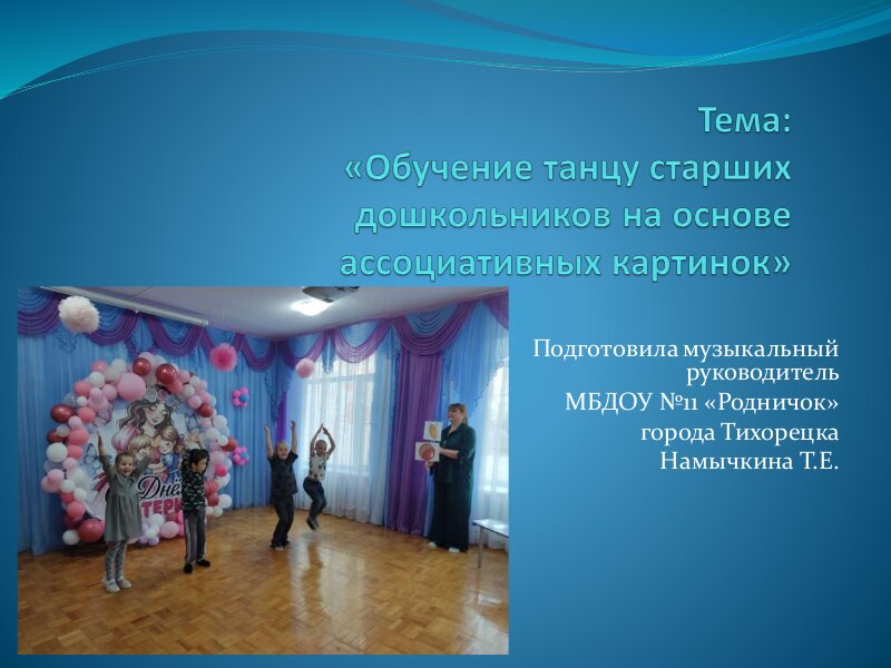 "Обучение танцу старших дошкольников на основе ассоциативных картинок".