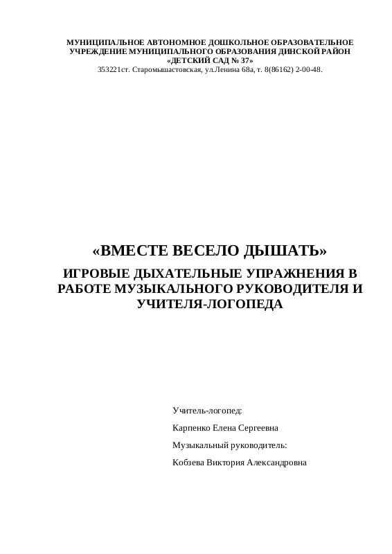 Игровые дыхательные упражнения в работе музыкального руководителя и учителя-логопеда.